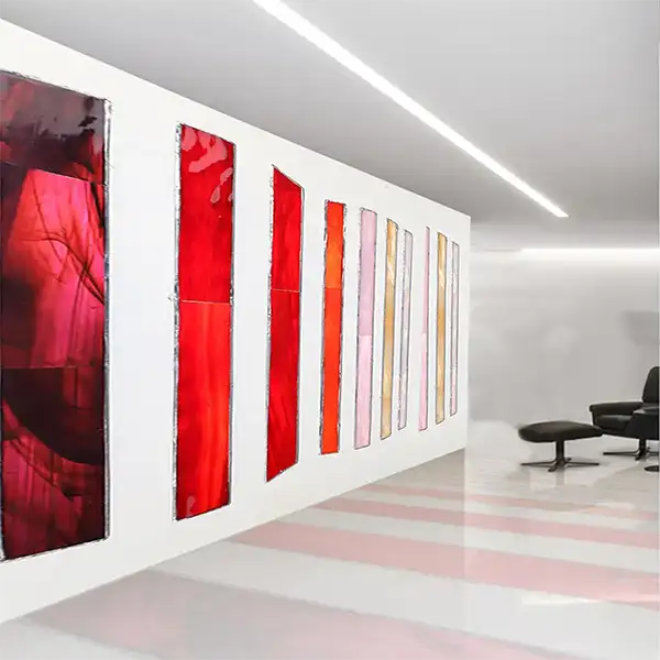 Glass is one of mankind's most beautiful inventions: it keeps out the cold and the rain, but lets in the sunlight and with it the warmth. And colored glass adds warmth and atmosphere. It is no coincidence that it was first used in churches because it fills you with awe.