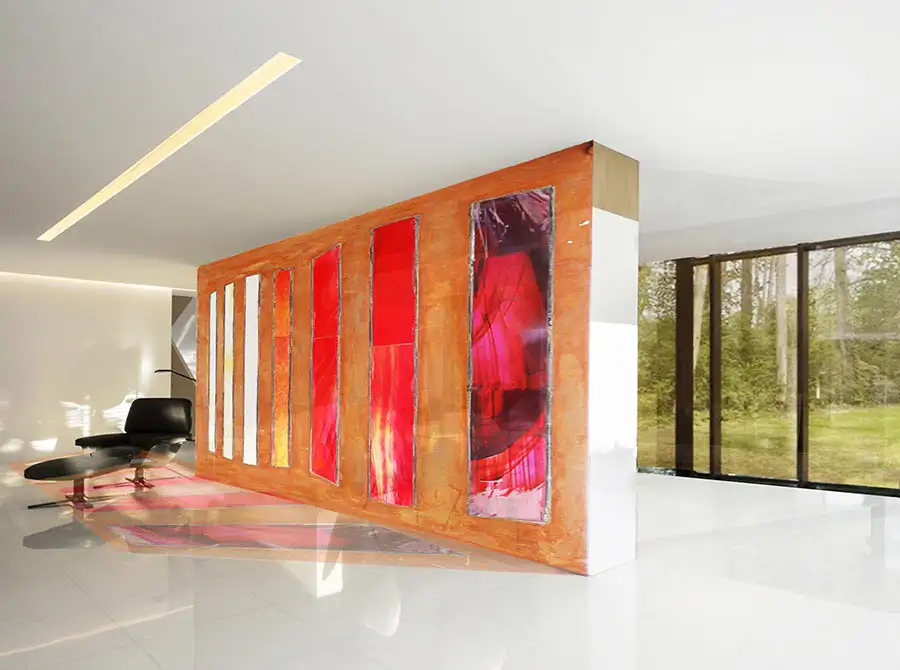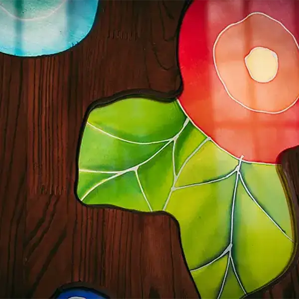 That is why I have decided to create surfaces for interior and exterior decoration using a combination of materials that will give this beautiful technique, Tiffany, a new life and a new place in interior design or the creation of outdoor spaces.